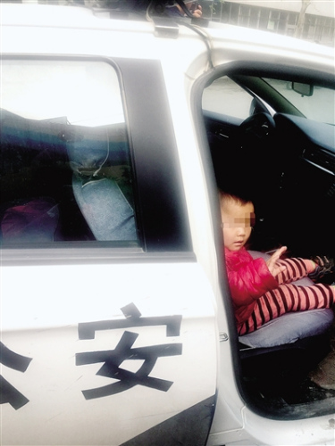 坐上警車的孩子不忘擺手說(shuō)再見(jiàn)