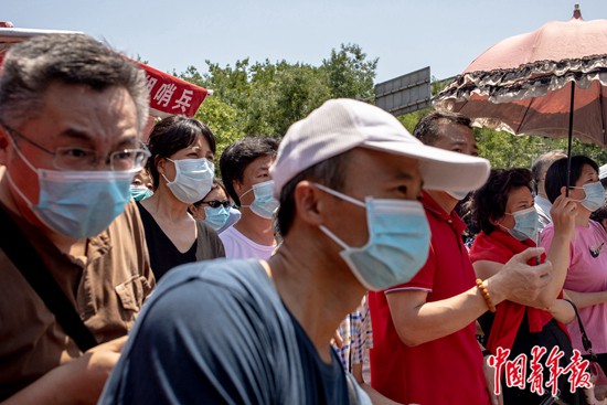 7月7日上午,北京市第八十中學(xué)門口,高考語(yǔ)文考試結(jié)束后,等待考生的家長(zhǎng)們。中青報(bào)·中青網(wǎng)記者 李雋輝/攝