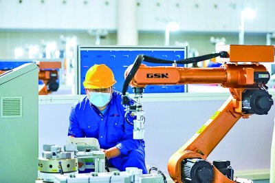 河北工業(yè)職業(yè)技術(shù)大學(xué)智能制造學(xué)院的學(xué)生在動(dòng)手操作設(shè)備。光明圖片