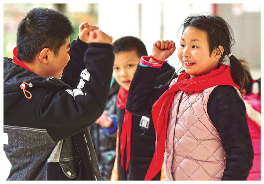 課間操,聽障學生在玩耍打鬧(2月23日攝)。本報記者魏培全攝