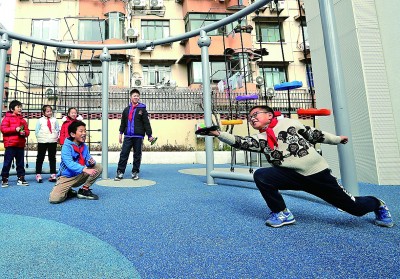 上海市徐匯區(qū)凌云街道凌云新村社區(qū),孩子們?cè)谝黄鹜嫠?。新華社發(fā)
