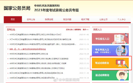 14日晚間,不少考生在網(wǎng)站曬出剛剛查到的2023國(guó)考筆試成績(jī)。一些網(wǎng)友反映2023國(guó)考專題網(wǎng)頁(yè)上分?jǐn)?shù)查詢通道擁擠,網(wǎng)頁(yè)顯示“服務(wù)器繁忙”。今年1月8日,中央機(jī)關(guān)及其直屬機(jī)構(gòu)2023年度公務(wù)員考試公共科目筆試舉行。本次國(guó)考計(jì)劃招錄3.71萬(wàn)人,152.5萬(wàn)人實(shí)際參加考試,實(shí)際參加考試人數(shù)與錄用計(jì)劃數(shù)之比約為41:1。