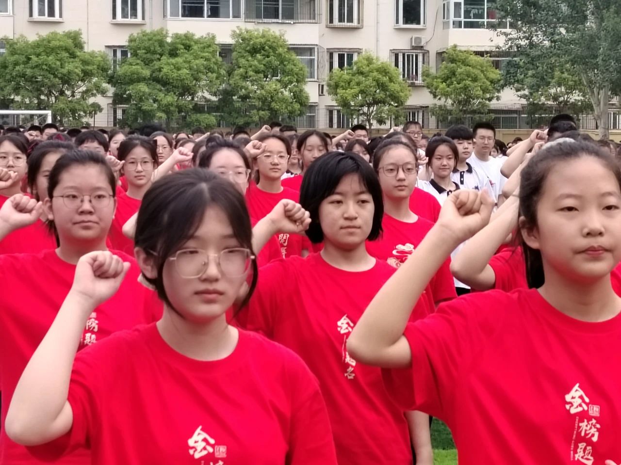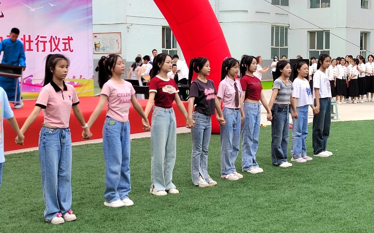 畢業(yè)宣誓環(huán)節(jié),全體初三學子舉起右拳,錚錚誓言承載著同學們的激情與夢想,響徹校園!七、八年級吶喊助威,祝愿學長學姐們考試順利,金榜題名!