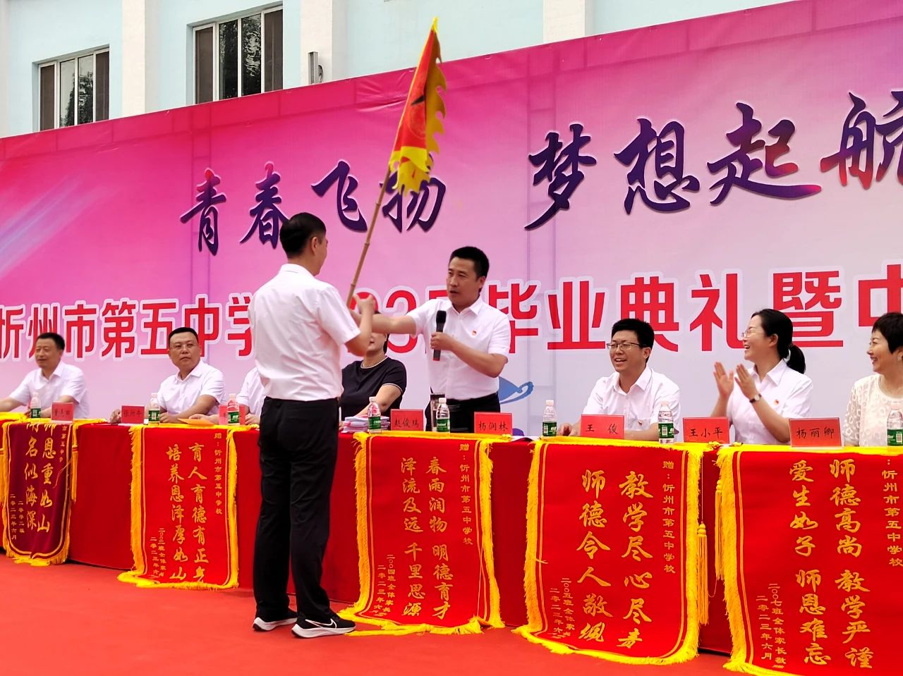 趙俊瑞校長為初三學子頒發(fā)畢業(yè)證書,隨著一份份畢業(yè)證書的發(fā)放,畢業(yè)生們與五中的故事也將落下帷幕,但青春不散,記憶不散。