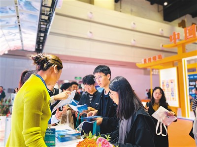 求職者在第六屆中國(guó)·河南招才引智創(chuàng)新發(fā)展大會(huì)現(xiàn)場(chǎng)了解相關(guān)信息。