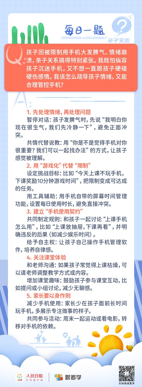 每日一題丨限制孩子使用手機(jī)導(dǎo)致其情緒崩潰,如何緩解親子關(guān)系?