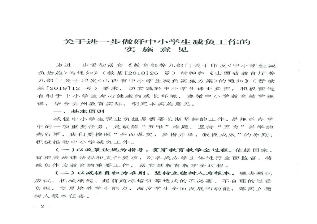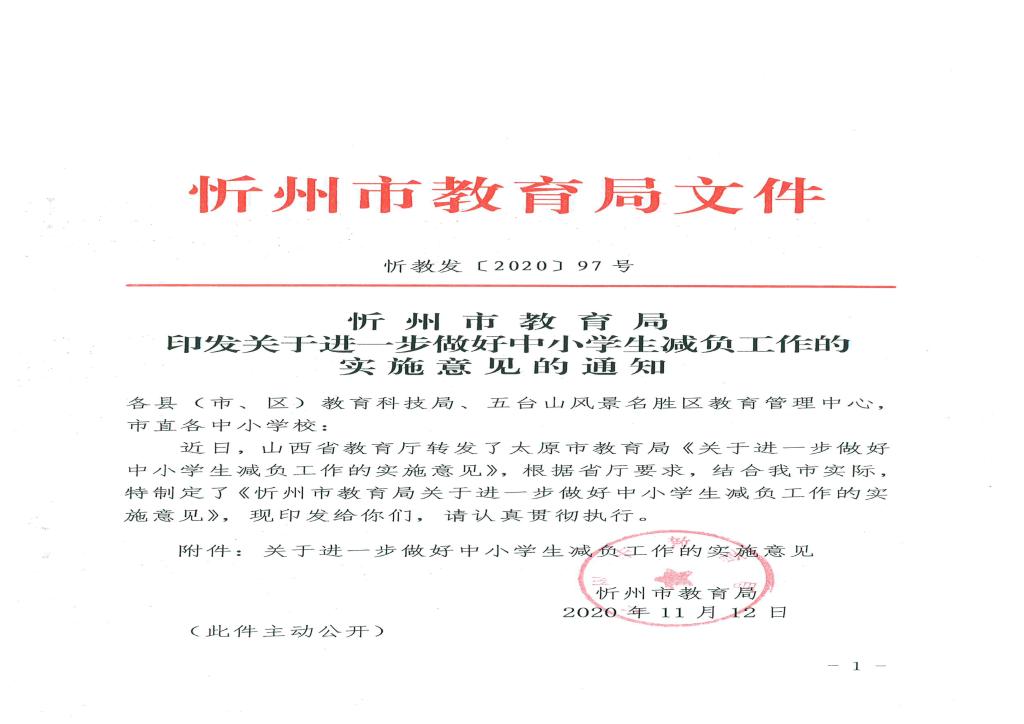 忻州市教育局印發(fā)關(guān)于進(jìn)一步做好中小學(xué)生減負(fù)工作的實(shí)施意見(jiàn)的通知