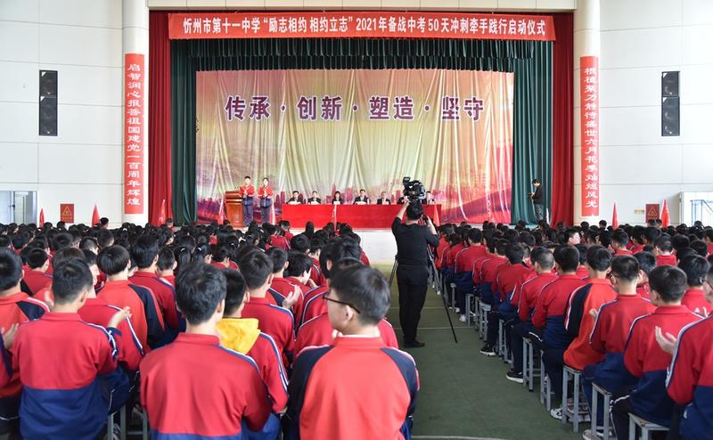 又是一年五月,陽光明媚,又逢“五四”,血脈僨張。在五月的花海中擁抱青春的時代,在初升的太陽下點燃生命的未來。為進一步激發(fā)初三師生堅定目標(biāo)、奮力拼搏、沖刺中考的雄心壯志,5月4日上午,忻州市第十一中學(xué)初三年級全體師生在學(xué)校文體藝苑舉行了“勵志相約、相約立志”2021屆備戰(zhàn)中考50天沖刺牽手踐行啟動儀式,校長張云長、黨支部書記趙智剛、學(xué)校領(lǐng)導(dǎo)、部分家長代表共同見證了這一振奮人心的時刻。