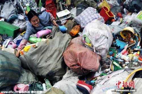 資料圖。2015年4月6日,重慶,這是清理工在堆碼場將大包的垃圾轉(zhuǎn)運(yùn)至分揀點(diǎn),以方便開包處理。 江上鷗 攝 圖片來源:東方IC