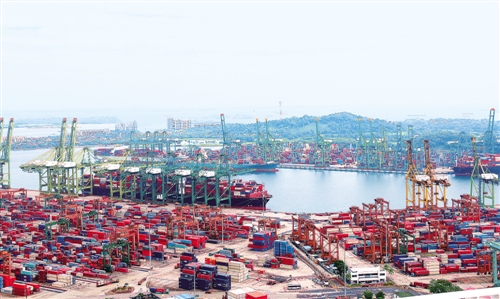 運(yùn)作中的新加坡港,是世界最大的集裝箱港口之一。本報駐新加坡記者 劉 威攝