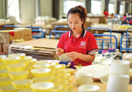 “與潮州等國內(nèi)日用瓷生產(chǎn)基地相比,朔州從制泥到產(chǎn)品設(shè)計再到成品外銷,幾乎都是各家日用瓷企業(yè)獨立完成。各家企業(yè)都有自己的‘泥、釉、?!谱鳝h(huán)節(jié),制泥、成型、制模等產(chǎn)業(yè)鏈上游配套企業(yè)還是比較缺失的?!闭f起朔州日用瓷產(chǎn)業(yè)鏈存在的問題,梅斌直言,“此外,目前朔州專業(yè)從事日用瓷研發(fā)設(shè)計和銷售的企業(yè)也比較少,缺乏權(quán)威產(chǎn)品檢測機構(gòu)的情況也需改善?!?/p>