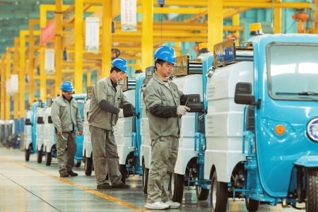 2月17日,在安徽省蕪湖市繁昌經(jīng)濟(jì)開發(fā)區(qū)愛瑞特新能源專用汽車生產(chǎn)車間里,工人組裝新能源電動(dòng)清掃車。