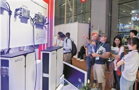4月16日,采購商在第135屆廣交會上了解太陽能發(fā)電設(shè)備。電動載人汽車(新能源汽車)、鋰電池和太陽能電池被稱為我國外貿(mào)“新三樣”。統(tǒng)計數(shù)據(jù)顯示,2023年,我國出口機(jī)電產(chǎn)品當(dāng)中,電動載人汽車、鋰電池和太陽能電池等“新三樣”產(chǎn)品合計出口1.06萬億元,首次突破萬億大關(guān)?!靶氯龢印鳖I(lǐng)跑出口,激發(fā)外貿(mào)新動能,推進(jìn)中國經(jīng)濟(jì)高質(zhì)量發(fā)展。本屆廣交會上,“新三樣”相關(guān)展區(qū)“光電鋰”交易持續(xù)火爆。 新華社記者 盧漢欣 攝