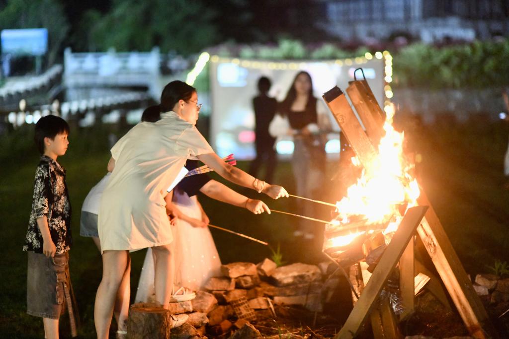 游客在寧??h桑洲鎮(zhèn)高山露營基地度過端午假期。(尤才彬 攝)