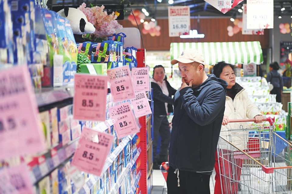十一月十一日,太原市濱河路一家超市內(nèi),市民正在選購貨品?!半p十一”當(dāng)日,省城各大商超、購物中心優(yōu)惠活動多多,吸引了眾多消費者線下選購商品。