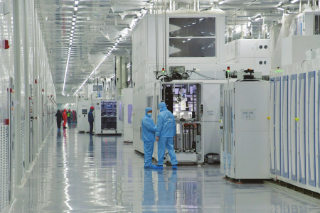 代表全球光伏制造頂尖水平的14GW“黑燈工廠”一道新能源科技(忻州)有限公司14GW光伏電池生產(chǎn)車間。