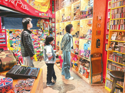 十月二十日,一家三口在太原市開化寺古玩市場(chǎng)的樂多中古店選購(gòu)二手相機(jī)、玩具。