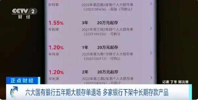 記者查詢工、農、中、建、交、郵儲六大國有銀行的App發(fā)現(xiàn),五年期大額存單已不顯示,三年期相關產品的利率普遍降到1.5%至1.75%。此外,部分中小銀行也開始密集調整存款業(yè)務。梅州客商銀行近期公告已下架五年期定期存款產品,億聯(lián)銀行等機構App也已不顯示五年期大額存單。