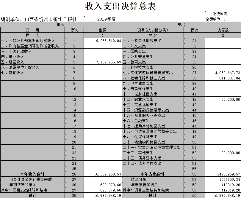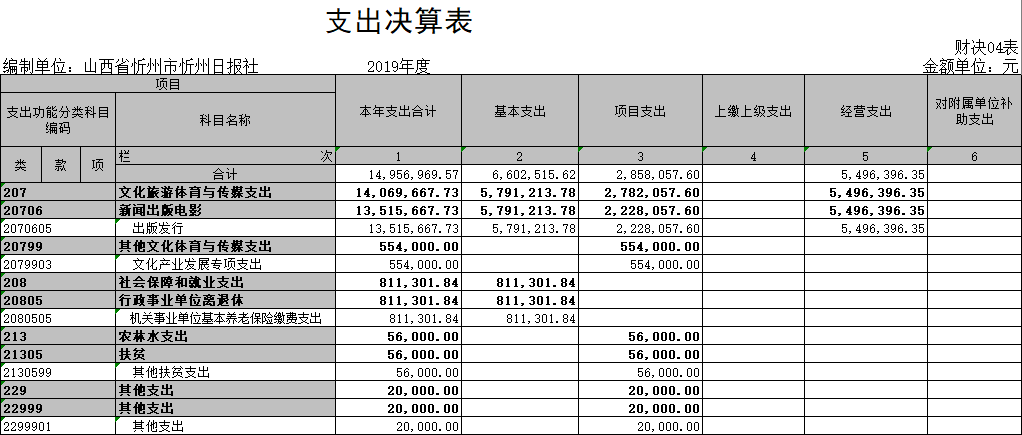 忻州日?qǐng)?bào)社2019年度部門決算及“三公”經(jīng)費(fèi)決算公開情況