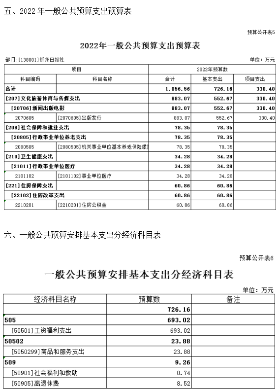 第二部分2022年度忻州日?qǐng)?bào)社預(yù)算報(bào)表