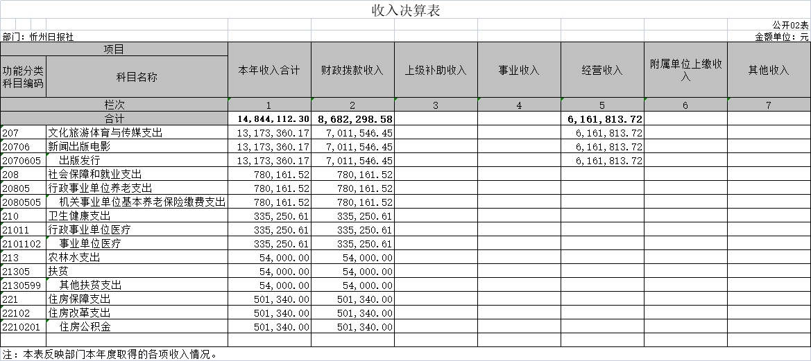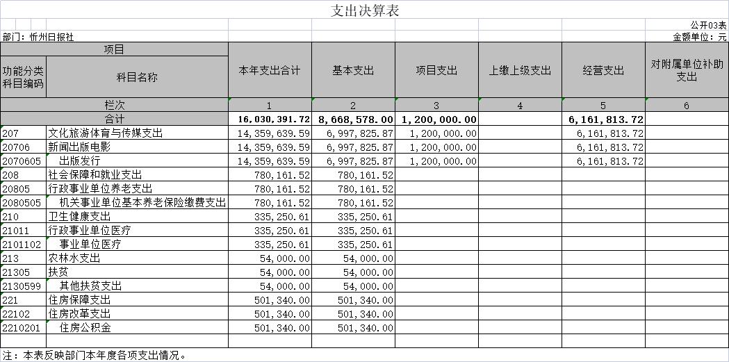 說明:忻州日報社沒有使用政府性基金預(yù)算安排的支出,故本表無數(shù)據(jù)。