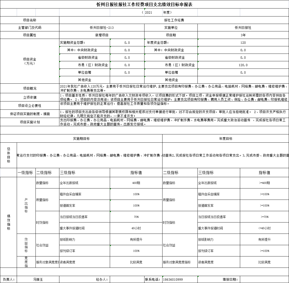 1、項目基本性質(zhì):忻州日報社每年的廣告收入交財政專項收入,以項目費的形式下?lián)埽?021年以忻州日報社工作經(jīng)費下?lián)芙o我單位120萬元。項目立項、資金申報根據(jù)正常維護報社運轉(zhuǎn)所需的各項內(nèi)容預(yù)估各項經(jīng)費。