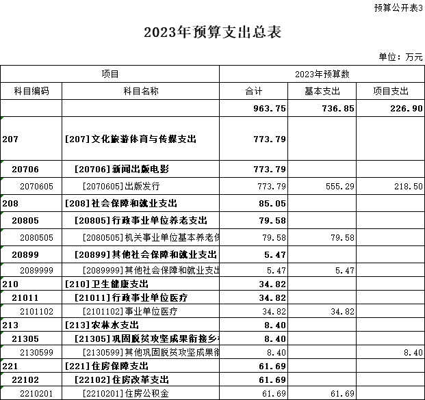 項(xiàng)目支出226.9萬(wàn)元,比2022年減少103.5萬(wàn)元。主要為廣告收入專項(xiàng)經(jīng)費(fèi)110萬(wàn)元,主要用于辦公費(fèi)、維修費(fèi)、水電費(fèi)、差旅費(fèi)、采暖費(fèi)、郵電費(fèi)等日常開(kāi)支。駐村幫扶干部補(bǔ)助經(jīng)費(fèi)8.4萬(wàn)元,主要用于下鄉(xiāng)工作隊(duì)補(bǔ)助費(fèi)用。采編系統(tǒng)網(wǎng)絡(luò)安全維護(hù)93.6萬(wàn)元,主要用于增強(qiáng)新媒體采編系統(tǒng)功能。老舊小區(qū)改造14.9萬(wàn)元,提升人居環(huán)境。