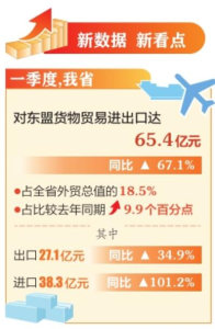 一季度我省對東盟進(jìn)出口同比增長67.1%