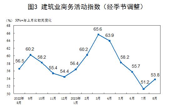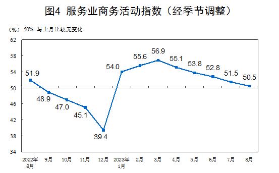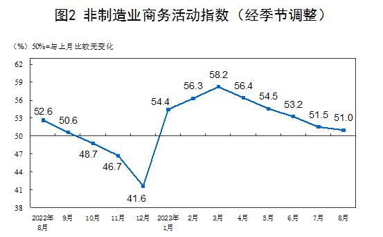 此外,在中國非制造業(yè)采購經理指數(shù)運行情況方面,8月份,非制造業(yè)商務活動指數(shù)為51.0%,比上月下降0.5個百分點,仍高于臨界點,非制造業(yè)持續(xù)擴張。