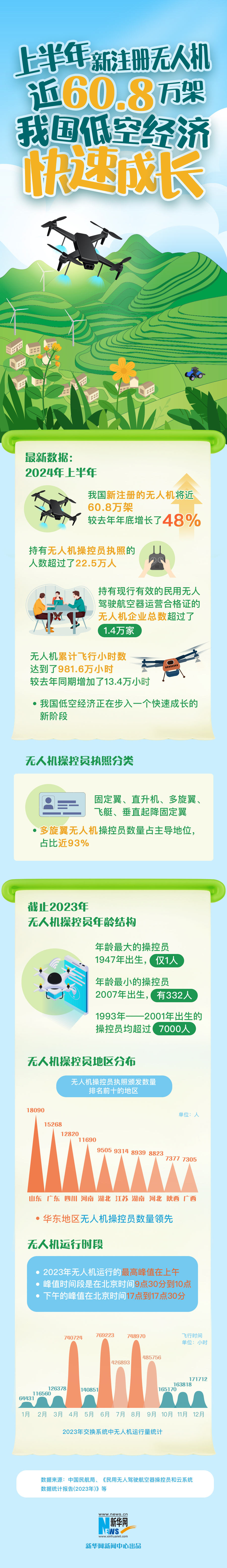 上半年新注冊(cè)無(wú)人機(jī)近60.8萬(wàn)架 我國(guó)低空經(jīng)濟(jì)快速成長(zhǎng)
