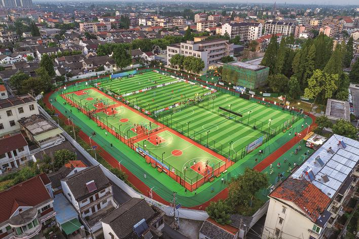 對于社區(qū)嵌入式服務(wù)綜合體所在的王店鎮(zhèn)全民健身中心,大家也都表現(xiàn)出極大的興趣。這是2020年王店鎮(zhèn)利用王店中學(xué)校區(qū)舊址打造的一個樞紐式運(yùn)動場所,足球場、籃球場、門球場、室內(nèi)健身房等多個室內(nèi)外運(yùn)動場所一應(yīng)俱全。更特別的是,它不僅是嘉興市首個鄉(xiāng)鎮(zhèn)全民健身中心,更是當(dāng)?shù)鼐拇蛟斓囊粋€集體育活動、技能培訓(xùn)和休閑活動于一體的文體中心,擁有齊全的健身設(shè)施和培訓(xùn)場地,能滿足周邊居民對休閑運(yùn)動和企業(yè)員工提升素質(zhì)的需求。