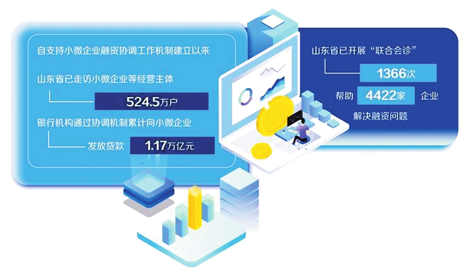 自小微協(xié)調(diào)機(jī)制建立以來(lái),山東做精做深融資對(duì)接,著力推動(dòng)形成破解融資難的有效措施和長(zhǎng)效機(jī)制。從全省小微企業(yè)融資情況看,截至目前,山東省已走訪小微企業(yè)等經(jīng)營(yíng)主體524.5萬(wàn)戶;銀行機(jī)構(gòu)通過(guò)協(xié)調(diào)機(jī)制累計(jì)向小微企業(yè)發(fā)放貸款1.17萬(wàn)億元。