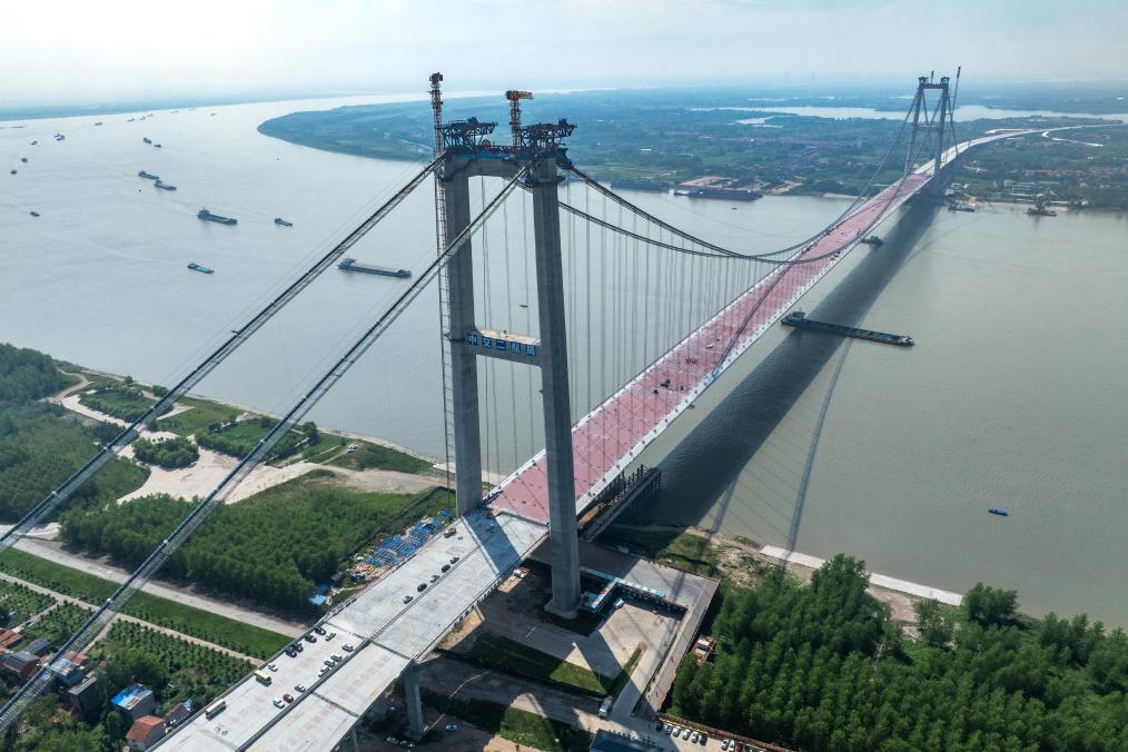 7月26日拍攝的合龍后的雙柳長江大橋(無人機(jī)照片)。新華社記者 肖藝九 攝??