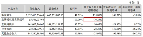 品牌授權(quán)與實(shí)景娛樂板塊: