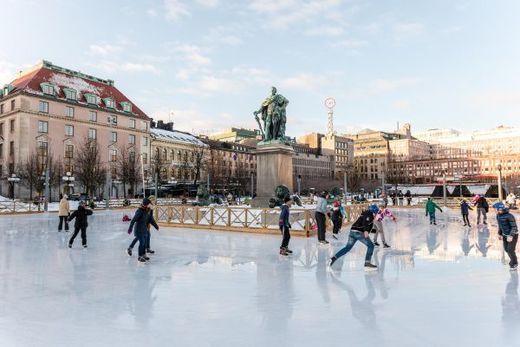 2015年2月6日,人們?cè)谌鸬渌沟赂鐮柲κ兄行牡膰?guó)王花園溜冰。斯德哥爾摩的冬季常年被白雪覆蓋,陽(yáng)光下的城市顯得格外寧?kù)o。