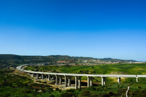 中國建筑股份有限公司阿爾及利亞分公司修建的南北高速公路希法段項目于2012年開工。圖為2017年4月18日,在阿爾及利亞麥迪亞省境內(nèi)的南北高速公路希法段項目建設(shè)工地,工程機械進(jìn)行橋梁鋪設(shè)。(新華社)