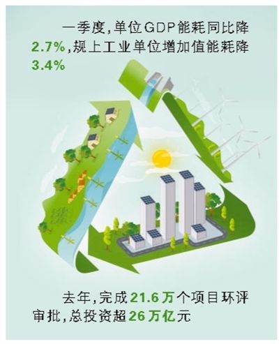今年以來(lái),我國(guó)經(jīng)濟(jì)運(yùn)行平穩(wěn),經(jīng)濟(jì)結(jié)構(gòu)不斷優(yōu)化,產(chǎn)業(yè)的綠色化水平不斷提升。初步核算,一季度單位GDP能耗同比下降2.7%,其中規(guī)模以上工業(yè)單位增加值能耗下降3.4%。各地各部門加強(qiáng)監(jiān)管與優(yōu)化服務(wù)并重,促進(jìn)了新舊動(dòng)能轉(zhuǎn)換和經(jīng)濟(jì)高質(zhì)量發(fā)展。