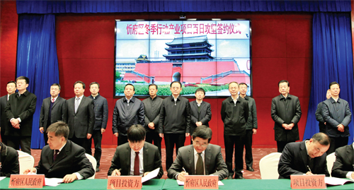 忻府區(qū)領導在簽約儀式上承諾,將繼續(xù)在市委、市政府的堅強領導下,全面推進項目攻堅百日行動,堅持叩門招商、開放包容、鞠親服務,堅決杜絕吃、拿、卡、要,嚴厲打擊破壞投資環(huán)境的人和事,全力營造親商、安商、富商的良好氛圍。集中人力、精力、財力,服務、指導、幫扶到位,落實任務、責任、措施,促開工、搶進度,攻難點、破難題,強服務、治環(huán)境,發(fā)揚“白+黑”、“5+2’’、“晴+雨”連續(xù)作戰(zhàn)精神,苦干實干,按照“九個一批”工作方案,全力解決已排查出的涉及現(xiàn)有32個項目中的51個問題,全力策劃好總投資222.16億元的華能風光互補發(fā)電、上海航天光伏發(fā)電、北京富丞應急救援工程等30個項目,全力促進總投資41.25億元的田森匯生活購物廣場等6個項目落地,全力推進總投資85.8億元的華能風電、上海光伏發(fā)電等23個項目的開工建設。