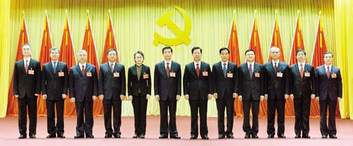 11月5日,中國(guó)共產(chǎn)黨山西省第十一屆委員會(huì)第一次全體會(huì)議在太原舉行,全會(huì)選舉產(chǎn)生了十一屆省委常委和書記、副書記,駱惠寧(左六)當(dāng)選為省委書記,樓陽(yáng)生(右六)、黃曉薇(左五)當(dāng)選為省委副書記,高建民(右五)、孫紹騁(左四)、王偉中(右四)、盛茂林(左三)、任建華(右三)、羅清宇(左二)、張吉福(右二)、王清憲(左一)、廉毅敏(右一)當(dāng)選為省委常委。山西日?qǐng)?bào)記者 李聯(lián)軍 攝