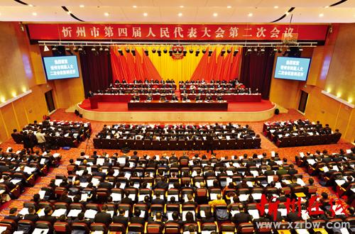 上午9時,賈雪峰宣布:忻州市第四屆人民代表大會第二次會議開幕!會場全體起立,奏國歌。