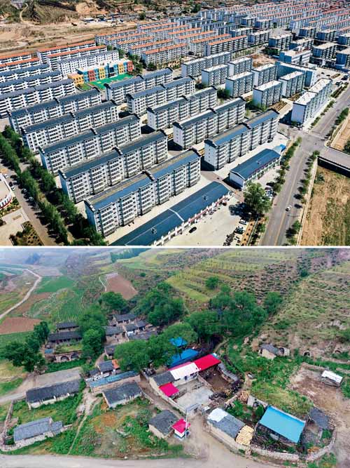 近年來,山西堅持抓減負、重落實,把基層工作聚焦到鄉(xiāng)村振興與脫貧攻堅、社區(qū)服務(wù)與基層治理、服務(wù)中心與保障大局上來。目前,山西全省58個貧困縣已全部摘帽,3350個深度貧困自然村整體搬遷全部完成。圖片為拼版照片,上圖為2020年5月20日拍攝的山西省忻州市岢嵐縣廣惠園移民新區(qū),下圖為2017年6月22日拍攝的岢嵐縣趙家洼村,部分趙家洼村村民目前已搬遷居住到了廣惠園移民新區(qū)。 新華社記者 曹陽/攝