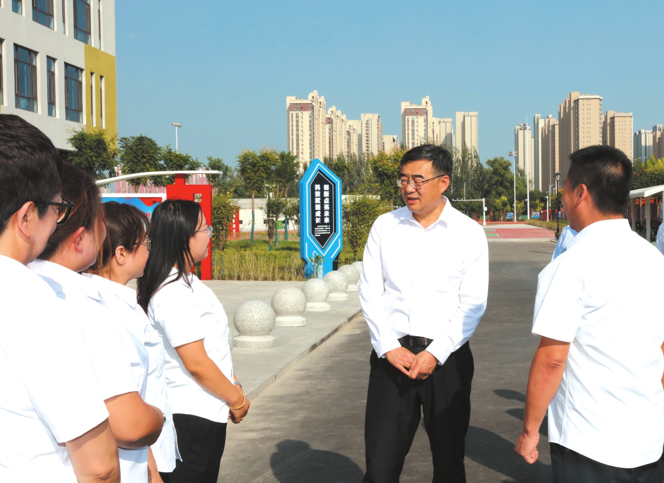 經(jīng)過幾年來在教育領(lǐng)域的連續(xù)投入,我市的學(xué)校布局優(yōu)化、校舍新建改造、設(shè)施更新提升、教師人才充實等工作成效逐步顯現(xiàn),一批新校園、新校舍、新設(shè)施等紛紛啟用,成為忻州高質(zhì)量發(fā)展的潛力所在。李建國一行在各個學(xué)??赐繂栆痪€教師職工,察看改造中或已啟用的操場、建成啟用的教學(xué)樓和多功能教室等設(shè)施,耐心詢問新校區(qū)教師的切身感受、通勤等工作生活情況,詳細了解學(xué)校的服務(wù)半徑、師資力量、薪酬待遇等情況,感謝廣大教師扎根三尺講臺、傳道授業(yè)解惑,引導(dǎo)一屆屆學(xué)生樹立崇高理想和遠大志向,為忻州教育事業(yè)作出的無私奉獻。