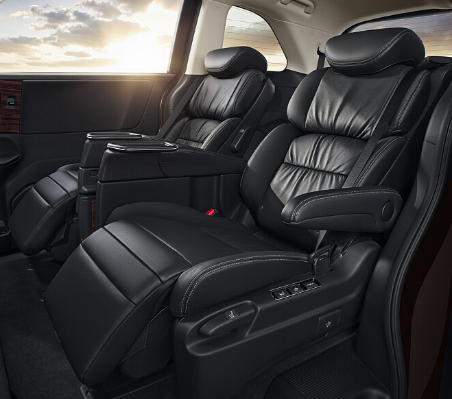 全新一代艾力紳第二排座椅堪比飛機(jī)頭等艙,可橫向、縱向方位調(diào)節(jié),實(shí)現(xiàn)多樣空間變化,而且還可電動調(diào)節(jié)椅背和腿托,手動調(diào)節(jié)肩部角度,從容享受舒適坐姿。且具備座椅加熱功能,實(shí)現(xiàn)了同級別最優(yōu)的乘坐舒適性,隱藏在二排的扶手型小桌板商務(wù)范十足,全系標(biāo)配的電動雙天窗大幅提升了乘坐者的舒適感。