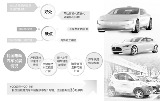 數(shù)據(jù)顯示,2009年—2015年,我國(guó)新能源汽車年銷量從不足1萬(wàn)輛,迅速提升到33萬(wàn)多輛,成為全球最大的新能源汽車市場(chǎng)。2016年1—7月,全國(guó)新能源汽車?yán)塾?jì)產(chǎn)銷量均超過(guò)20萬(wàn)輛,同比增長(zhǎng)均翻番。其中,純電動(dòng)汽車產(chǎn)、銷分別為16.2萬(wàn)輛和15.3萬(wàn)輛,同比增長(zhǎng)156.4%和160.9%。