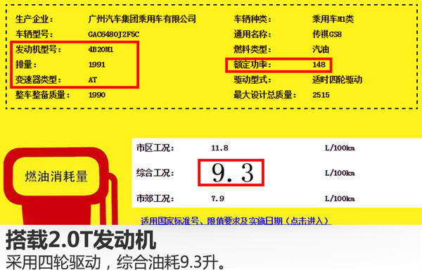 動(dòng)力方面,從國家工信部公布的信息可知,廣汽傳祺GS8將搭載一臺(tái)型號(hào)為4B20M1的2.0升直列四缸渦輪增壓發(fā)動(dòng)機(jī),額定功率148千瓦,匹配6速自動(dòng)變速箱。百公里綜合油耗分別為:兩驅(qū)車型8.7升,四驅(qū)車型9.3升。