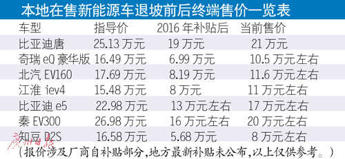 春節(jié)剛過,原計劃買輛純電動車上下班用的番禺市民劉先生,在去4S店轉(zhuǎn)了一圈后,開始猶豫了。原本看中的一款車,最終購車預(yù)算比去年年底多了好幾萬元。車商告訴他,因為“補貼退坡”,1月份還能以15.98萬元買到的一輛純電動新能源汽車,現(xiàn)在漲到20.38萬元左右。劉先生表示,補貼少已成定局,他決定與家人再等兩三個月,看有沒有性價比更高的新能源車可選,不然就將配置需求降低,買一輛更便宜的電動車。