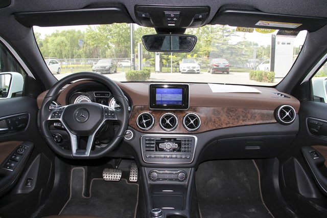 奔馳GLA的內(nèi)飾設(shè)計算是比較漂亮的,只是與奔馳其他車型采用相同的風格總顯得不算太有誠意。中控臺采用了最新的家族風格,配以大面積銀色飾板,往往能吸引到不少消費者的眼球。