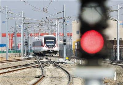 目前,新機場線車輛已正式進入調試階段,中鐵電氣化局一公司新機場線動車調試項目總工程師孫慶斌表示,3月16日左右,將進行長約6公里的新機場線樣板段動車調試。
