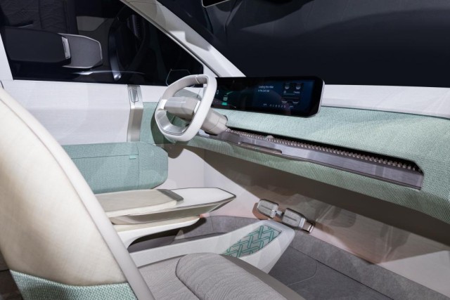 內(nèi)飾方面,起亞EV3概念車內(nèi)飾采用了簡約的設(shè)計風(fēng)格,可以看到,該車內(nèi)飾并沒有配備多功能按鍵,雙輻式的方向盤搭配大尺寸連屏,以及懸浮式的座椅,更顯未來感。此外,在內(nèi)飾用料上,該車內(nèi)飾采用了大面積的織物包裹,座椅采用環(huán)保材料,座椅設(shè)計符合人體工程學(xué)原理。