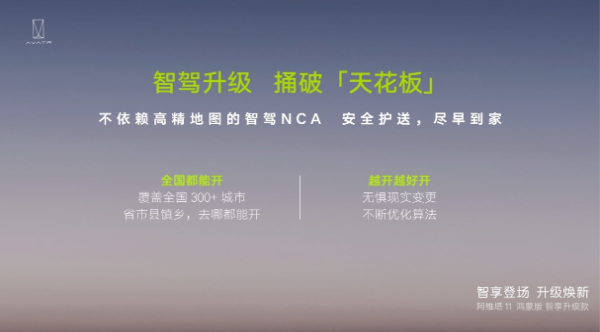 伴隨著阿維塔11鴻蒙版智享升級(jí)款的上市,阿維塔“去高精地圖化”智駕時(shí)代正式開啟,打破“按圖索驥”束縛,完美彌補(bǔ)當(dāng)下高精地圖智駕方案的不足并解鎖更多高頻智駕場(chǎng)景,城區(qū)NCA智駕功能即將一次性解鎖超過(guò)300個(gè)城市,帶來(lái)“全國(guó)都能開、 全國(guó)都好開”的出行體驗(yàn)。